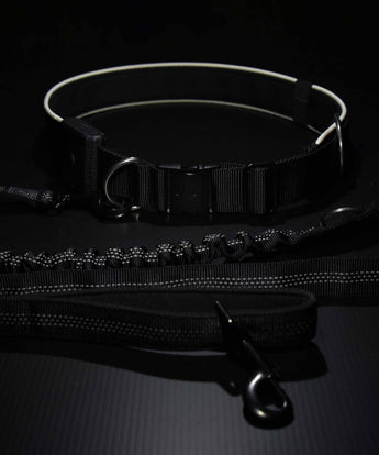 Hands-free dog leash with glowing belt and shock-absorbing bungee leash for safe night running, hiking, and evening dog walks.